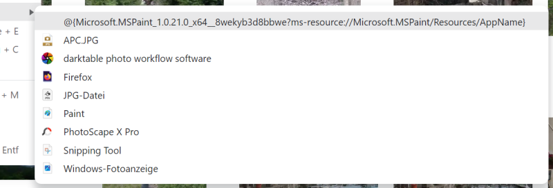 If I right mouse click on a JPG or JPEG file, followed by “open with”, I get a list with 15 picture related entries plus one with he possibility to select.