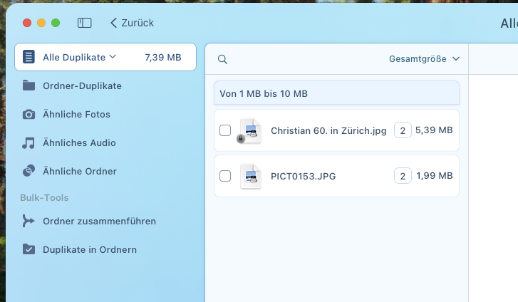 Duplicate file finder reports only 2 duplicates on the same external disk: