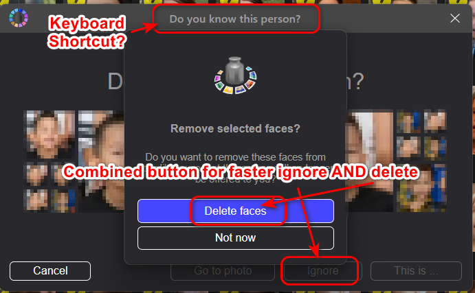 Stig Alot of faces that I ignore comes up again, similar faces of the same person.